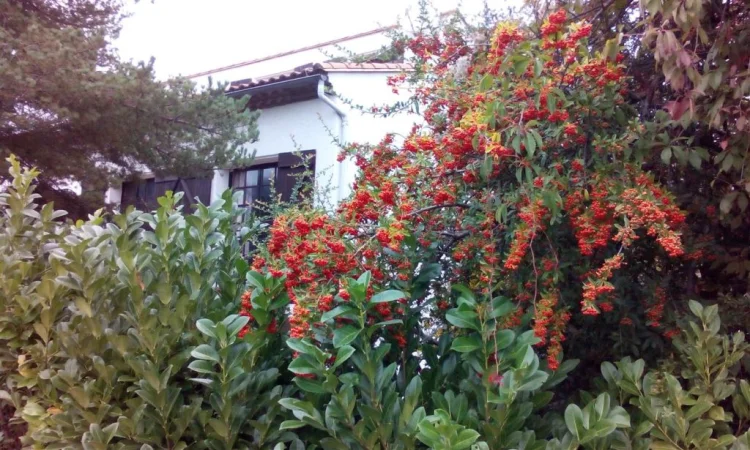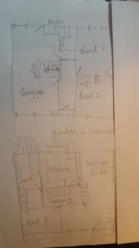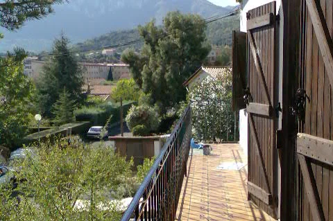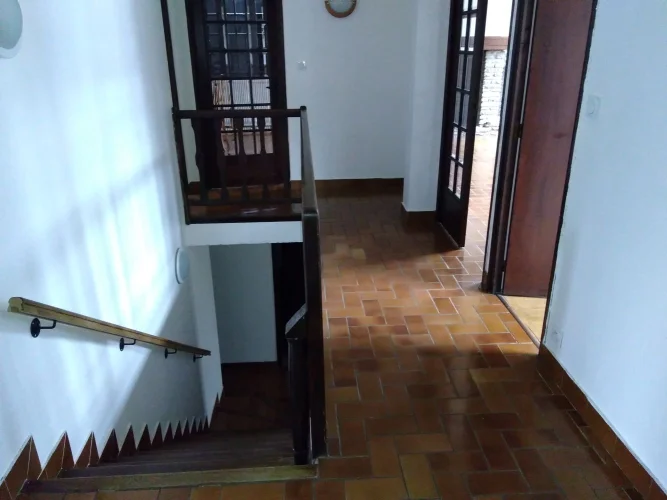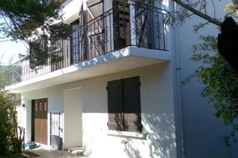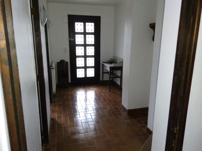 Au REZ-DE-CHAUSSÉE, il y a un HALL D'ENTRÉE menant à : UN VESTIAIRE avec wc et toilettes, et une salle de douche (fournie mais non installée) CHAMBRE UNE avec un nouveau sol en vinyle, une armoire intégrée et une fenêtre sur le jardin arrière un sol carrelé, une armoire intégrée et une fenêtre donnant sur le jardin de devant. Grand GARAGE INTÉGRAL avec portes vers la maison et le jardin arrière, chaudière et plomberie pour machine à laver. Les sols carrelés vitrés sont faciles à nettoyer et mènent à des marches faciles carrelées solides jusqu'au PREMIER ÉTAGE. De ce couloir central partent des portes menant à une GRANDE SALLE DE BAIN FAMILIALE en bleu ciel, avec bidet, douche et baignoire en fonte, VESTIAIRE avec toilettes et lavabo séparés, CHAMBRE TROIS/ ÉTUDE, avec fenêtre au sud et une armoire encastrée GRANDE L -SALON EN FORME avec cheminée en pierre avec un poêle à bois (vous pouvez cuisiner sur le dessus plat qui se trouve sous la hotte). Deux lots de doubles portes françaises orientées au sud mènent à un long balcon avec des vues spectaculaires sur la ville et les montagnes. Il y a une antenne parabolique équipée pour la réception de la télévision. Une autre fenêtre s'ouvre sur la salle à manger du salon. Détails avec poutres apparentes au plafond et portes à double vitrage vers le couloir d'un côté, porte à simple vitrage côté salle à manger menant à la cuisine. Il s'agit d'une pièce lumineuse et aérée. Il y a des points de téléphone dans toute la maison et une antenne intégrée. La CUISINE a des éléments intégrés, un mi-four (ventilateur électrique), un lave-vaisselle et un espace réfrigérateur. Il y a une plaque vitrocéramique électrique, des plans de travail et une crédence carrelés, des meubles bas et des placards muraux et un grand évier en grès. Il y a un placard à balais et un espace pour table et chaises. Portes françaises menant à un petit balcon avec des marches menant au jardin arrière et à la cuisine d'été. Une petite piscine pourrait être construite dans cette zone si vous le souhaitez. Il y a un arbre et des arbustes établis, et un cabanon pour le stockage du bois avec plus de rangement extérieur sous les marches (utile pour loger un chien à l'extérieur). Il y a un jardin latéral menant au jardin de devant. Depuis le salon, un escalier en bois ouvert mène à la CHAMBRE QUATRE sur la gauche avec des fenêtres hautes pour laisser entrer beaucoup de lumière, et CHAMBRE CINQ/aire de jeux ou d'étude qui est fermée par des rideaux. Cependant, il y a aussi des ouvertures menant à deux très grands greniers, faciles à convertir en chambre supplémentaire et peut-être une salle de bain. Même le sol est en briques d'argile rouge solide.