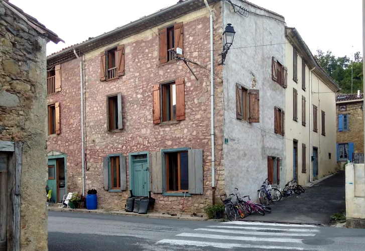 Il convient de noter que cette maison est tout à fait atypique. (Grande et construite en pierre, elle était autrefois la maison du tailleur du village, attenante à une grange.) Sa restauration a nécessité de nombreuses années de travail acharné. Elle bénéficie d'une production d'électricité gratuite grâce aux panneaux photovoltaïques installés sur le toit et d'une production d'eau chaude gratuite grâce à des panneaux solaires thermiques. Cette maison se situe au cœur d'un charmant village, d'où partent de nombreux sentiers sillonnant les collines environnantes. Les vallées sont plantées de tournesols et de vignes. Le village compte deux restaurants, une aire de jeux pour enfants et un camion de pain quotidien. La maison se trouve juste en bordure de la route qui traverse le village, face au clocher (situé au-dessus d'une ravissante petite église). Bien que la route et le clocher puissent être rebutants, j'ai trouvé la proximité de la vie villageoise (le Tour de France passe parfois devant la maison, des tracteurs tirent du foin, des ânes, des cyclistes, des gens avec des brouettes, des enfants sur leurs skateboards) vraiment intéressante, avec des voisins sympathiques, des rues bordées d'arbres et de petites ruelles tout autour. Si vous aimez la marche et le vélo, c'est l'endroit idéal. On oublie vite le son des cloches (un simple carillon à l'heure et à la demi-heure). La magnifique route de la vallée, bordée de tournesols et de vignes, vous mène à Esperaza, avec son marché coloré du dimanche et ses animations, à seulement 6 minutes en voiture. Idéal pour le vélo. Région Languedoc-Roussillon (Aude). 11260 Rouvenac.