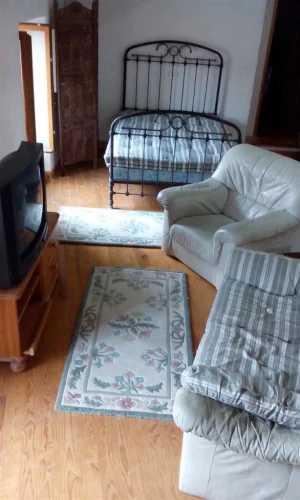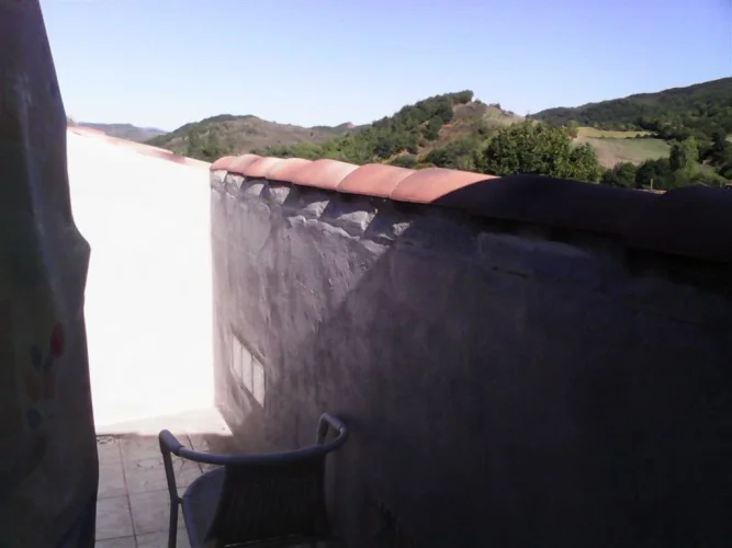 Escalier menant à un très grand grenier, parquet, vaste espace ouvert (actuellement aménagé avec un lit double et un coin salon avec télévision). Radiateur électrique thermostatique. Possibilité d'aménager une deuxième pièce ou un espace séparé par un rideau. Quelques marches mènent à une petite terrasse sur le toit offrant une vue imprenable sur les collines et le village en contrebas, surplombant les toits, l'horloge de l'église et la place. Un lieu idéal pour observer les étoiles, bronzer en toute intimité et admirer les hirondelles et les chauves-souris.