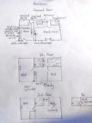 Cuisine entièrement équipée avec sol carrelé, poêle à bois supplémentaire et grand espace de cuisson. Four, espace pour une grande table avec chaises, nombreux rangements, garde-manger et très grand placard de stockage. Chauffage électrique avec thermostat. Électricité, plomberie et filtre à eau entièrement neufs. Un potentiel exceptionnel. Cette maison est spacieuse et lumineuse ! La chaleur du soleil en hiver limite les besoins en chauffage en journée. Une maison très économique à l'usage. Toiture et sols neufs. Gouttières en zinc à profil profond neuves pour résister aux intempéries. Les panneaux solaires photovoltaïques, intégrés à la toiture (procédé coûteux utilisant les équipements les plus récents), sont plus sûrs en cas de vent et offrent un meilleur rendement sur l'électricité revendue au réseau.