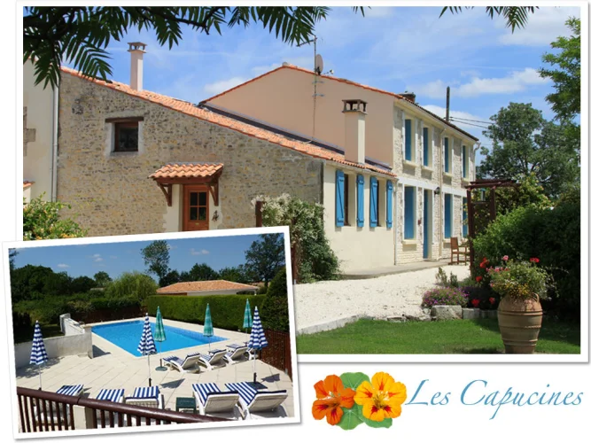 Being so centrally located...with La Rochelle, Ile de Re and the gorgeous Atlantic beaches to the West; the rolling countryside of the Dordogne and the vineyards of Bordeaux to the South; the Chateaux of the Loire Valley to the North and the ancient Charente towns such as Cognac and Saintes to the East (plus everywhere in between) makes Les Capucines the ultimate destination for tourists from all around the World!