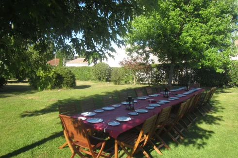 The property has 10 character bedrooms with high ceilings and very flexible bedding configurations, including cots, which can be fully customised to suit individual groups. There are 6 bathrooms, a large courtyard, large laundry and huge barn area and workshop. There is also a very large (12m x 6m) terraced swimming pool and around 1 acre of manicured lawns and gardens. In addition there is a popular children's play area with swings, sandpit, ride on tractors etc and a communal vegetable garden with tomatoes, courgettes, beans, strawberries, raspberries and all types of herbs.