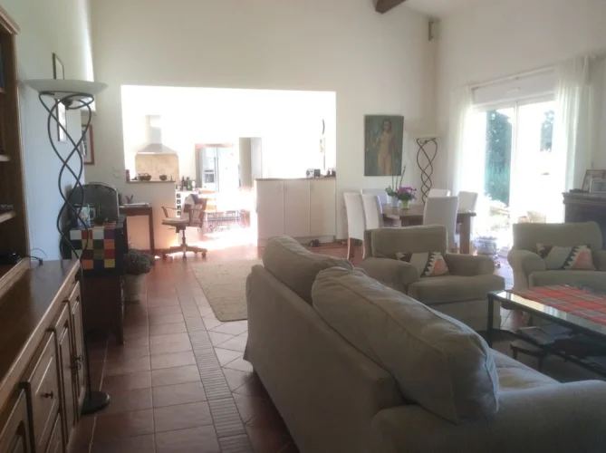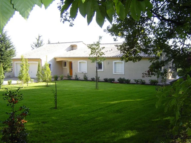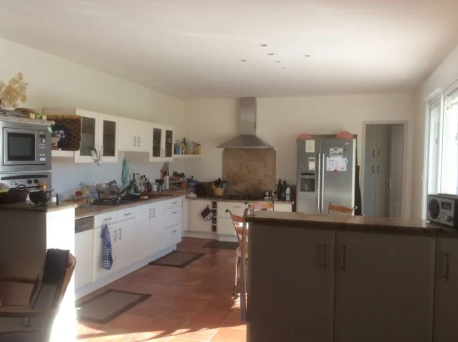 Located in the village of Saint Denis in the historic Languedoc Roussillon region of Southwest France, situated between the Mediterranean Sea and the Pyrenees Mountains this elegant, architect designed, modern single storey 152 m2 home with landscaped gardens and an unobstructed south facing view was built in 2004 on a 7.440 m2 property. All the land is divisible and approved for construction ("constructible" & "viabilisé"). Currently approximate price of land is €25/ m2.