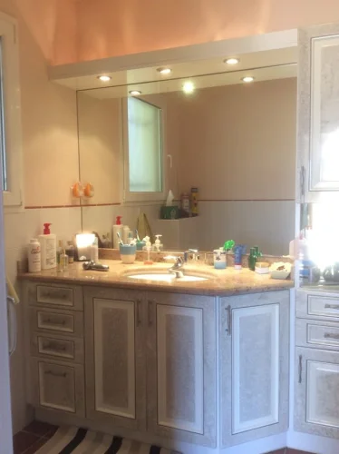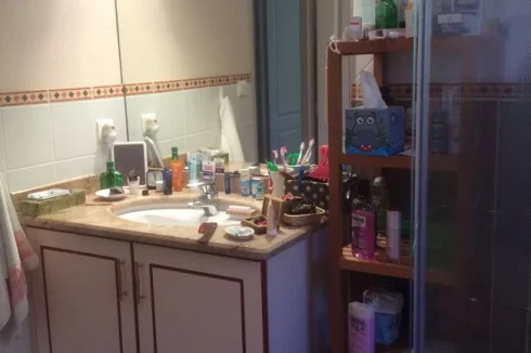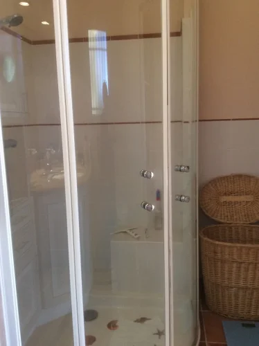 There two 12 m2 guest bedrooms with large built in cupboards which share a common bathroom with a walk in shower.