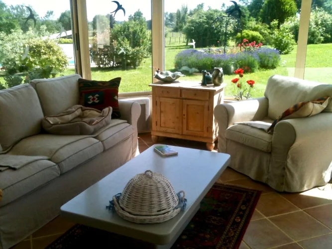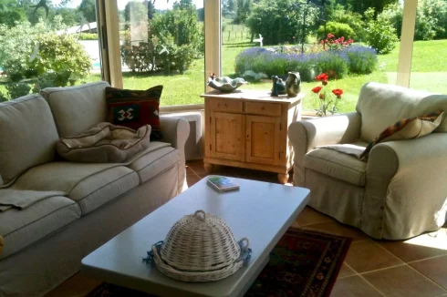 Enjoy the spacious conservatory, the covered pool with terrace, and the splendid view.