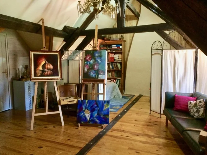 The spacious barn with authentic ‘auvant’ is entirely made of natural stone and has much possibilities such as stables, chambres d'hôtes, gite, atelier, garage.