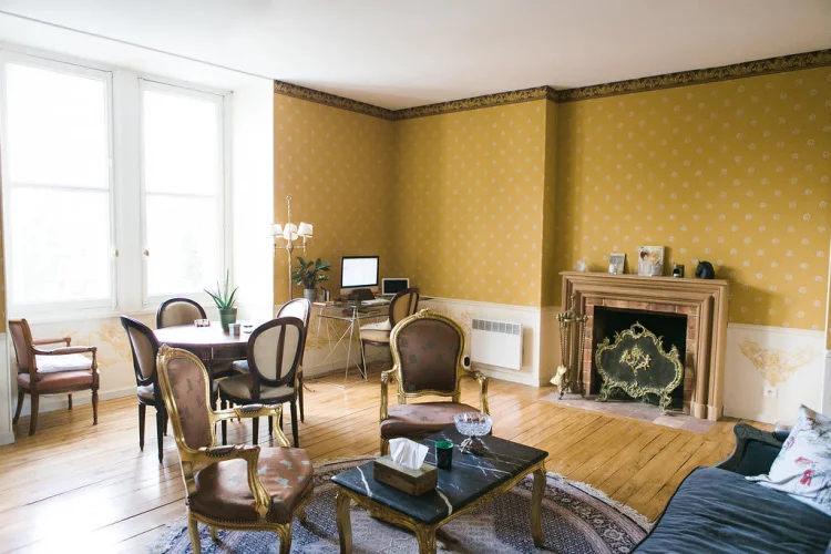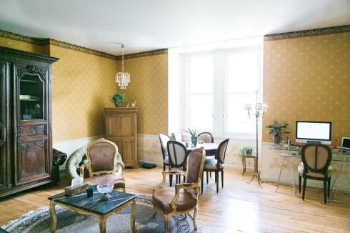 Élégant et confortable appartement d'une chambre situé dans un magnifique château français construit au XVIIe siècle. Surface habitable de 45m2, chauffage électrique et cheminée. Livré avec goût meublé avec de beaux meubles antiques avec une vue imprenable depuis la fenêtre de l'espace de vie dans cet appartement au troisième / dernier étage.
