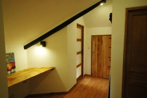 Hallway with built-in oak desk