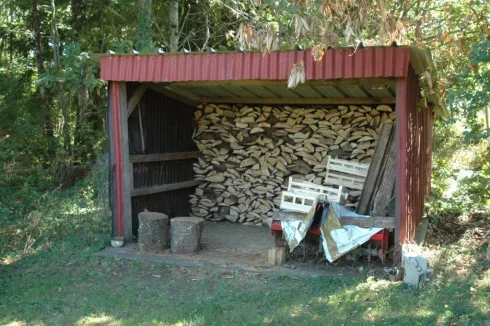 Covered wood shed for up to 23 m³ of firewood, w/metal roof