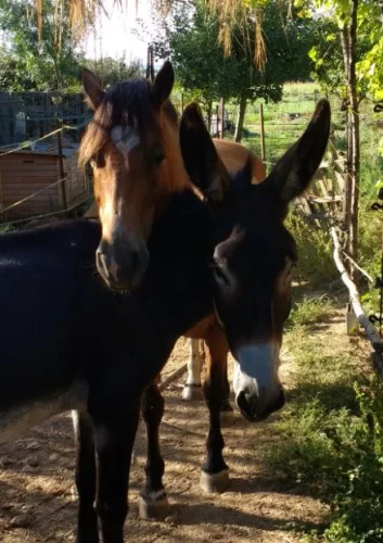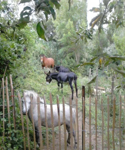 Bio gardening & water spring combined with living space for horses, donkeys, sheep on 2.5 ha. // Areas crossed by small river (permanent running water) connected by bridge // Micro-climate in the morning in the summer // Ecological approach since 2007 // Large biodiversity // 2 rows of vines (2 x 70m) for grape juice production (Merlot) // Fruit trees ( apples, cherry, peach, …..) // You'll never have to get water for your animals, no need for driving with water tanks to town.
