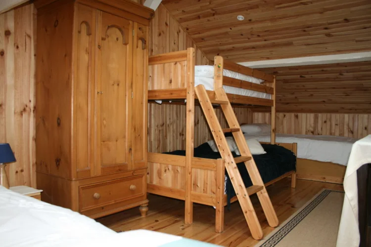 Upstairs is a very large open plan bedroom and/or additional sitting room. This room has been used by the current owners to accommodate friends and family during holidays – with 7 beds in the room.