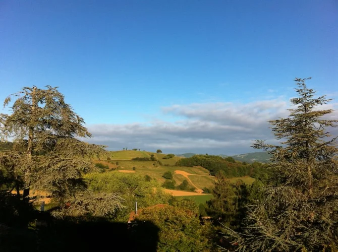 Nestled in the gentle hills, in a protected area in the country of L'Arbresle, La Noue is not isolated either. It has a bus service and the new tram-train joining the heart of Lyon in 30 minutes and the interest and support of the common community.