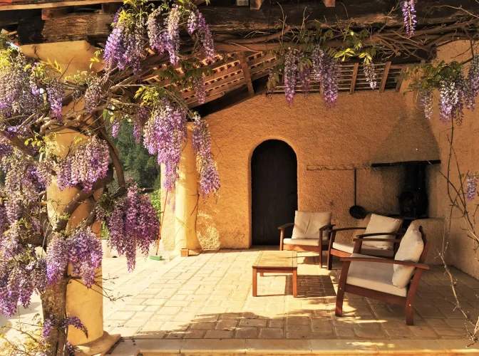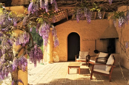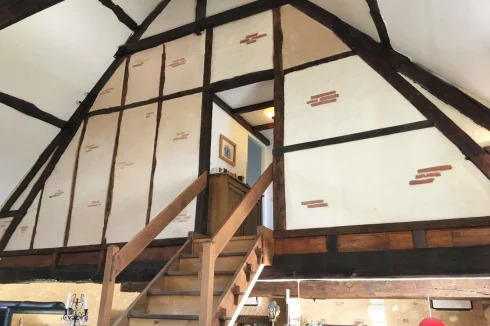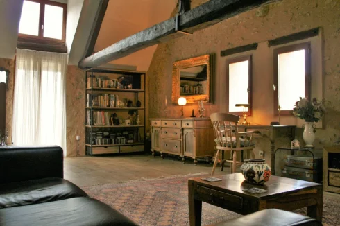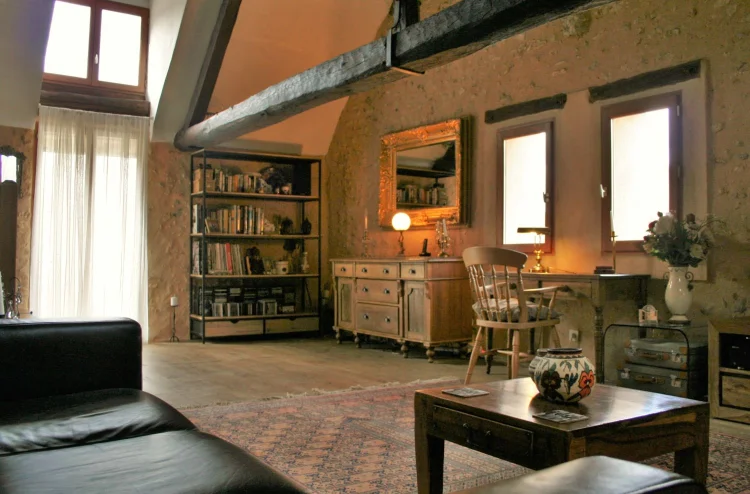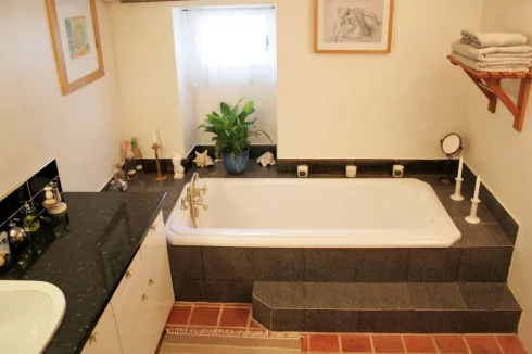 The barn offers country kitchen, bathroom, salon (8m x 6m) and mezzanine (8m x 4.5m) with beamed cathedral ceiling. Upstairs are three bedrooms, a master en-suite and loft access. The third bedroom is currently used as a dressing room. Solar panels provide hot water for the barn while energy-efficient climatisation (air con or heating) is fitted throughout. There is a high-spec 12kw Vermont wood-burner in the salon.