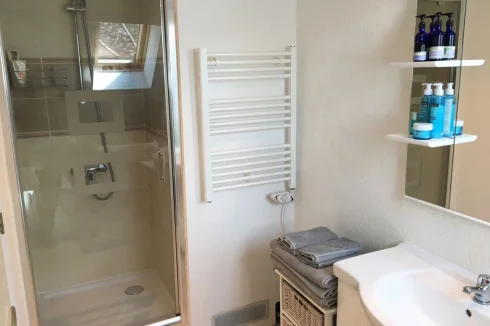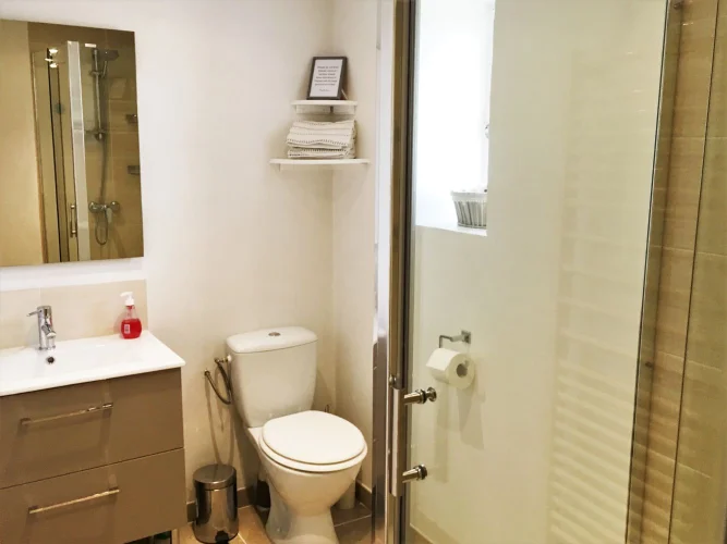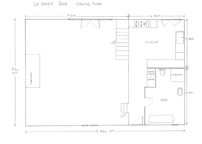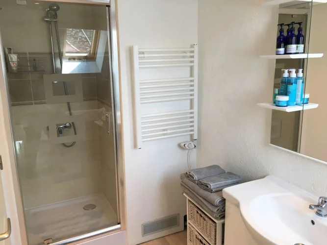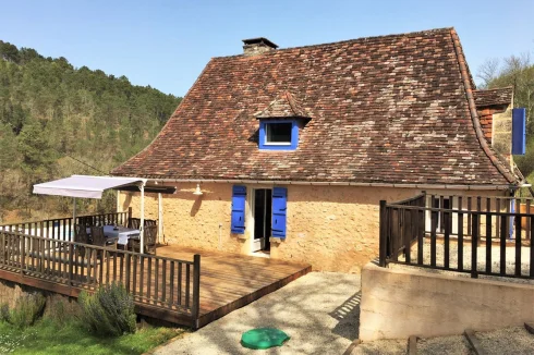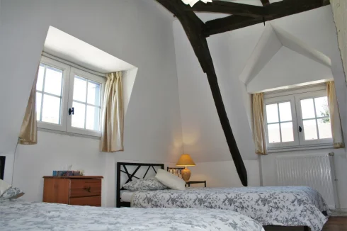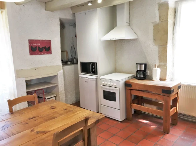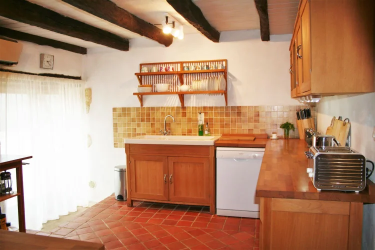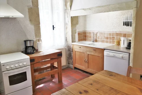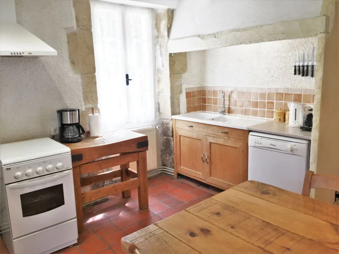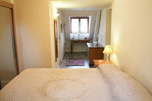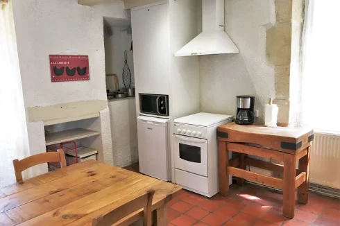 The cottage, with private terrace and parking for one car, has been rented out as a gite when family and friends are not visiting, and attracts summer income of €1,200 pw. The ground floor comprises an open-plan kitchen-diner-lounge and shower room/WC. Upstairs are two double bedrooms, a twin room and Wc. Hot water and central heating are powered by gas. All gite furniture can be included in the sale by negotiation.