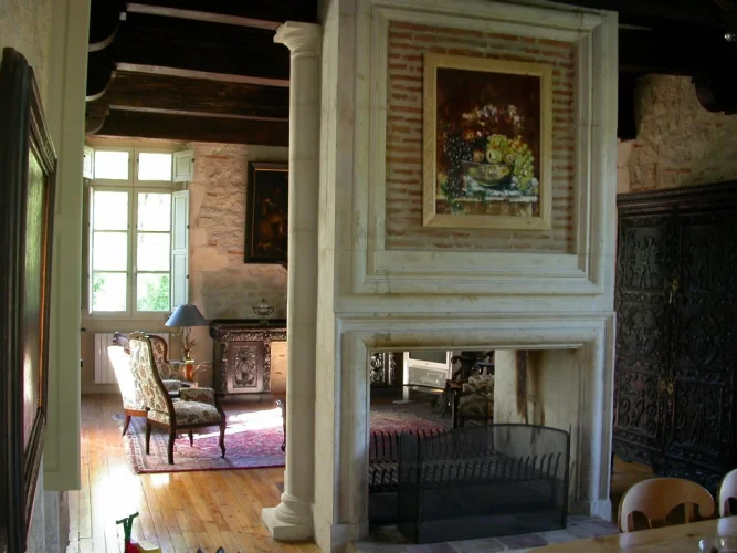 The stunning main house overlooks the valley and its own gardens and land. It offers a dining and living room/salon with an romantic open fireplace. Adjecting there is a well equiped kitchen which gives a direct view on the swimming pool and terrace.
