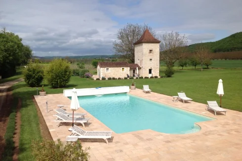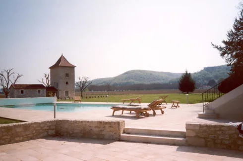 The sun drenched terrace which overlooks the swimming pool, the river Lot and de La Coste Chateau is one of the highlights!