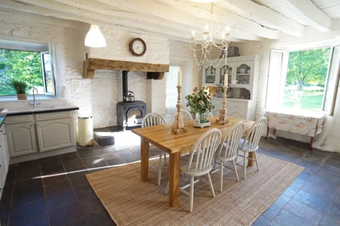 Swallow Farm, a sympathetically renovated, modernised, period stone built farmhouse, with 5 bedrooms, 2 bathrooms and lots of features including exposed stone walls, beams and fireplace.