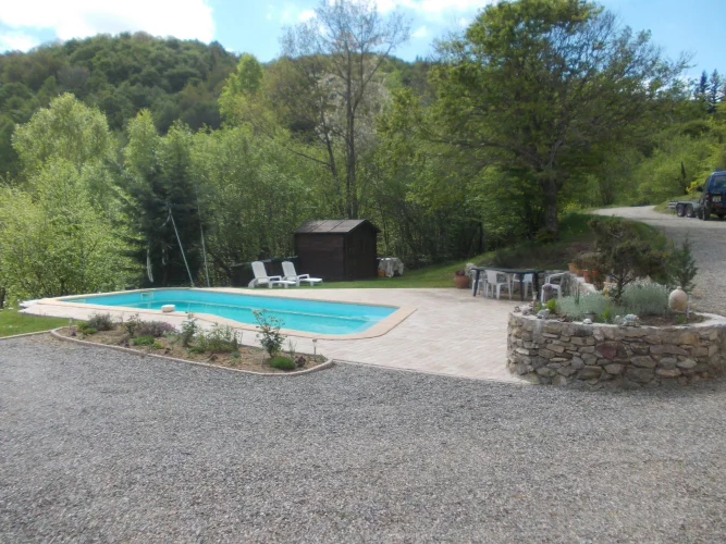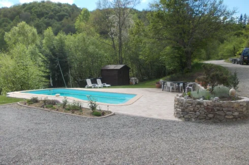 there is the 8 x4.5 m swimming pool with patio area. Various flower beds and a vegetable plot.There is even your own forest! A large garage/workshop, a pool house, a garden shed are to be found also. Loads of trees to make logs for the wood burning stoves.