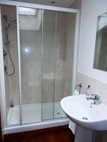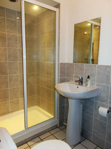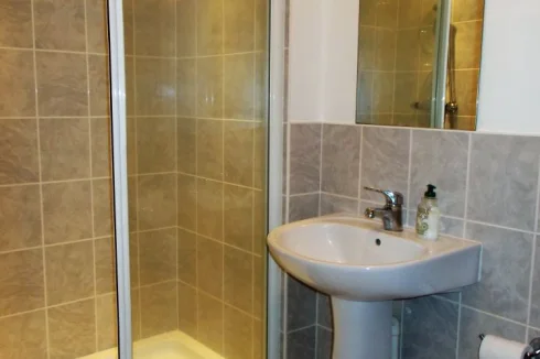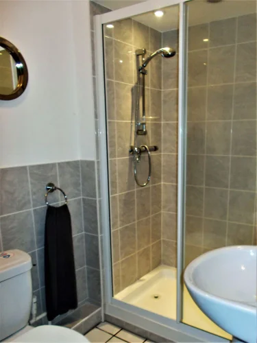 On the first floor, a galleried landing (5m2) leads to two bedrooms (15m2 & 14m2), each with an en-suite shower room (3m2) comprising double-width shower cubicle, wc and wash-hand basin.