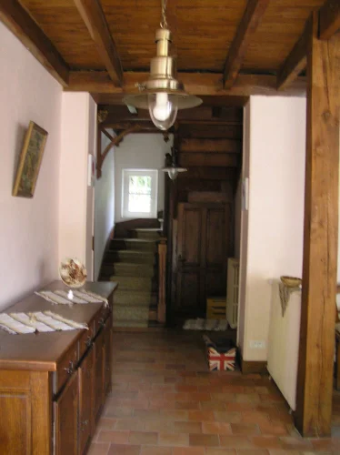 The large house surrounded by a park, bordered by a little stream, is located at the limit of the village, quiet, while being close to the grocery store, school and restaurants. 203m², 7 rooms, the house was converted into a spacious and pleasant cottage: chestnut wood and terracotta floors, fireplaces, exposed beams, give the character and the charm of old houses with all the comforts of today. The ground floor consists of a large living room (46m²), a dining room (26m²) with stonewalls, old stone sink, fireplaces, a kitchen (13m²), sanitary & cellar. Elm stairs give access to one side of the second floor: bedrooms (23 &14m² with access to a large balcony oriented south, 10m²) and bathroom. A second stairwell goes from the dining room to the second floor of the oldest part of the building: bedroom (17m²), dressing room and bathroom; the two landings communicate. An attic covers the oldest part, high enough to become a large room with a typical framework.