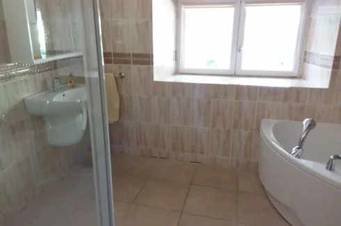 Downstairs bathroom 10m2 with bath and WC. Additional cloakroom.