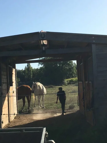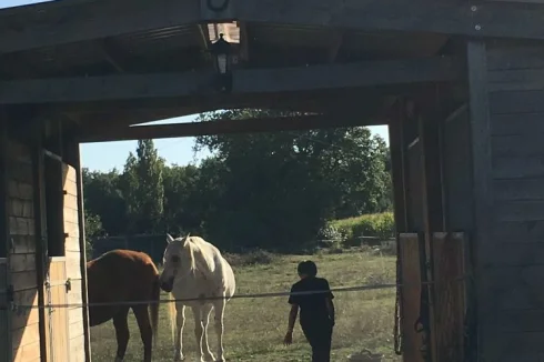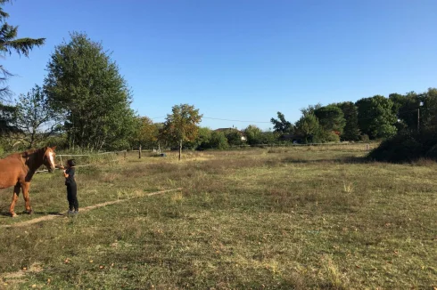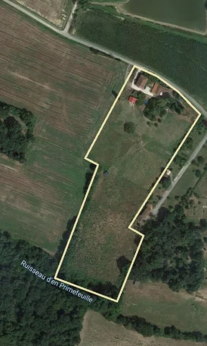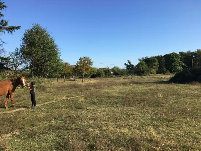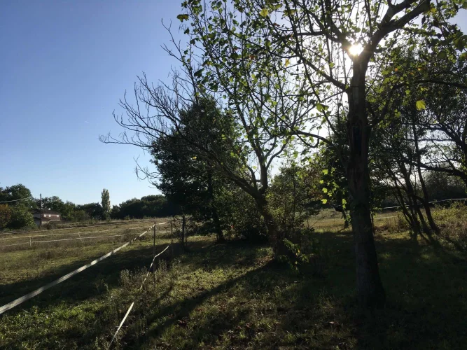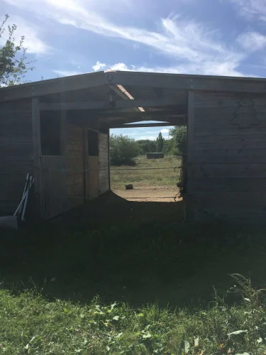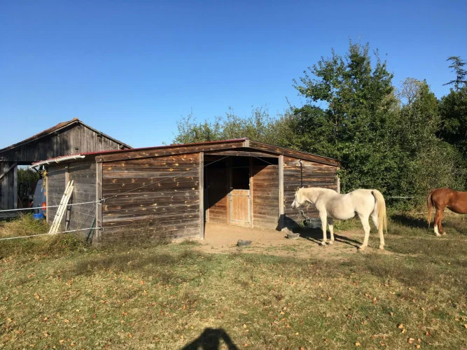 2.5ha plot with L-shaped house, large open barn, stable block and field shelter