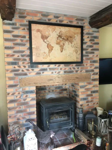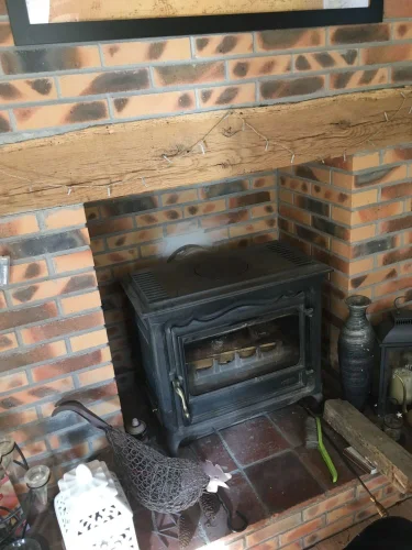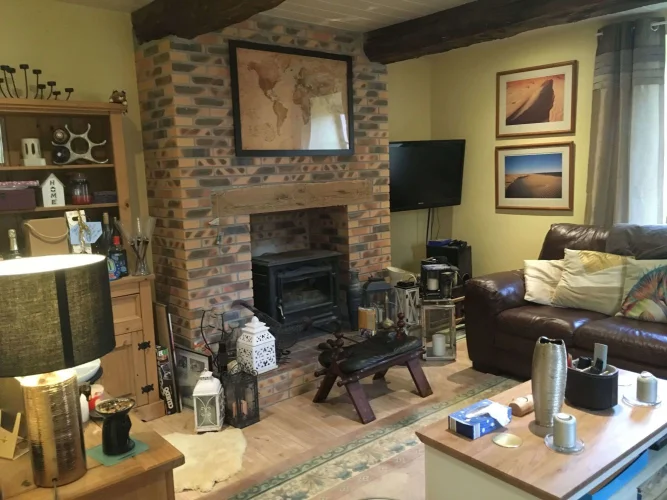 A large open doorway leads you into the sitting room with 2 double aspect windows, original beams and a lovely brick fireplace with fully functional wood burner. The fireplace was built in 2017 with modern techniques, yet perfectly complements the traditional style of the house. Underfloor heating and thermostatic control.