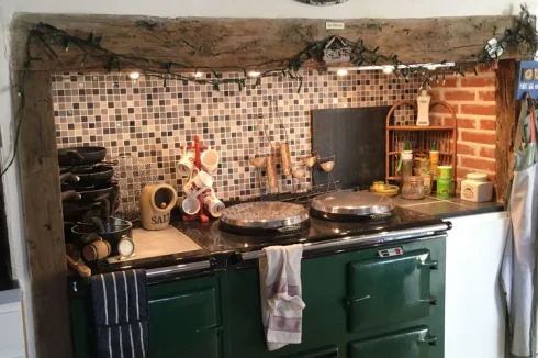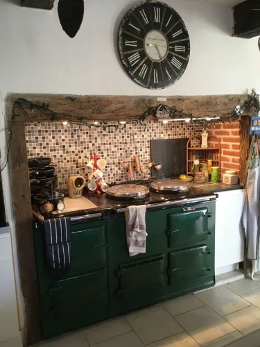 The fireplace in the kitchen is perfect for housing a large cooker, and the Aga is included!