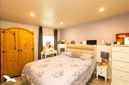 Bedroom 2 is another good size double with an electric radiator, double glazed window, lovely solid wood floor and original large beams. It also has a built-in storage area which currently houses a bookcase, but could easily be used as a wardrobe.
