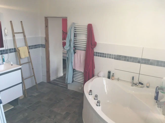 Upstairs is a large 72m² loft area - the original 'grenier' - currently used for storage but which can easily be converted. It would nicely fit 2 large bedrooms and a bathroom if more living space were required. The house is fully renovated and ready to move into, but there is potential to put your own stamp on it too.