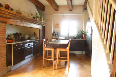 The property opens upon an intimate garden with a covered patio which provides access to the main large diner room with functioning fireplace, including a fully equipped kitchen. A kitchen door is serving another small garden.