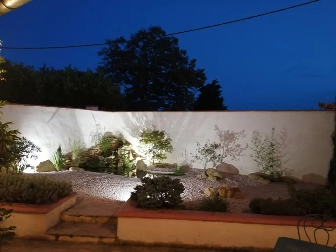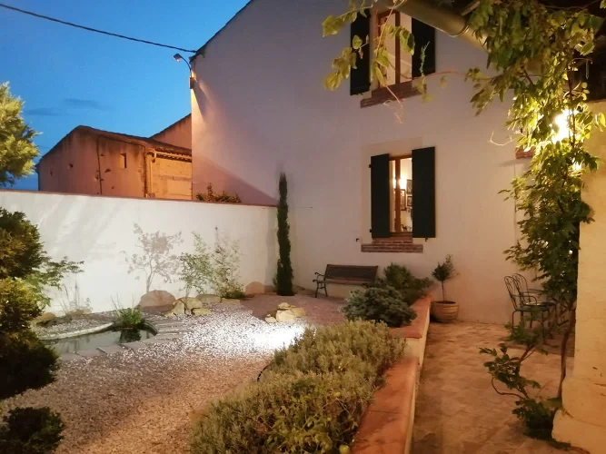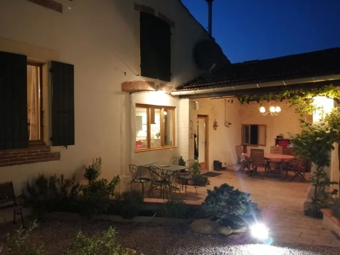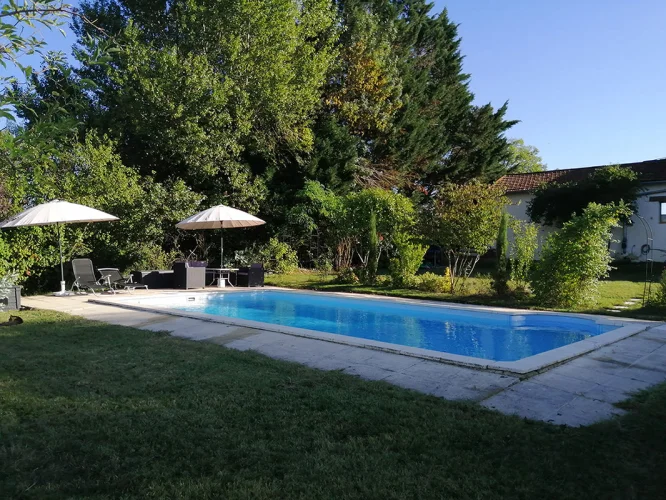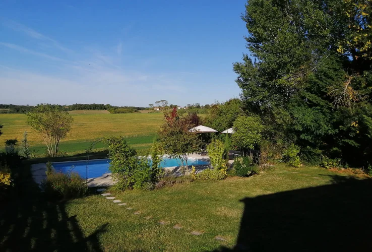 Beautiful, restored bourgeois house with garden, terrace, pool, attached gîte and 4 car off road parking. This stone built home borders a quiet village set in stunning countryside with views of the Pyrenees. The house is very comfortable with economic woodstove/oil boiler/radiator system (heating cost less 1000 euro per year), filtered rain water harvesting system, all double glazed windows, mains water and mains drainage.