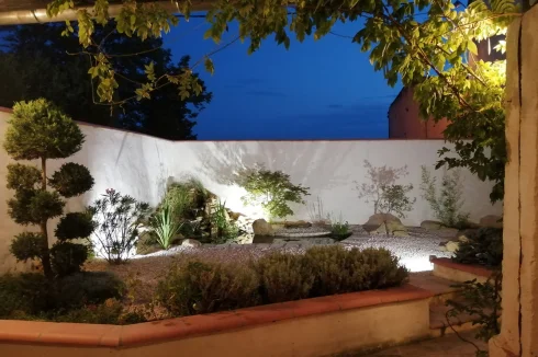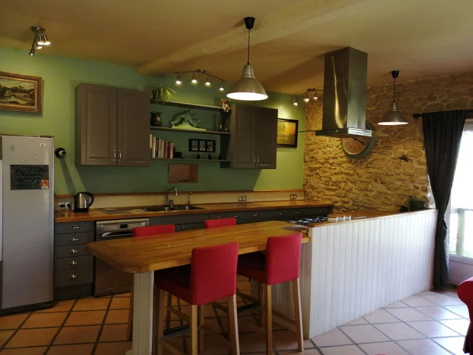 The main house is 245 sq m has been extensively modernised and consists of a very large lounge, diner and kitchen that looks out over the rolling hills, a walk in larder, walk in laundry room with access to the gite. This room also has a second aspect and accesses an open sided barn with a Japanese style walled garden with pond and waterfall. Offering two dining areas either in the shade or in the sun. The main floor offers a further 3 large rooms. A drawing/tv room, games room and home office/study/possible 5th bedroom. There is also a ground floor Wc .