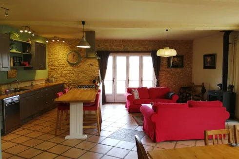 The attached "revenue generating" Gîte boasts 110 sq m has a large, sunny lounge with high ceilings which walks out to a lovely private courtyard, also known as the “sun trap”. The courtyard also offers access through to the garden and pool at the rear of the main house.