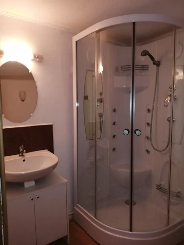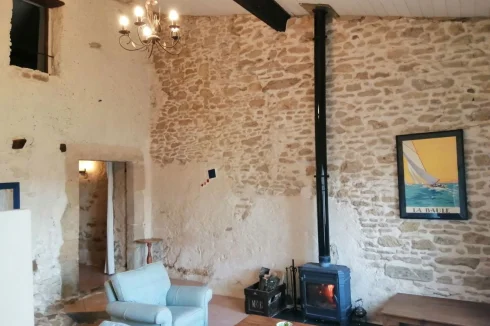 Also on the main floor is a fully equipped kitchen and dining room area and boiler/storage room. Upstairs there are 2 double bedrooms and 2 bathrooms. For 3 years the Gite received rave reviews from self catering vacationers commanding a 1000 euros per week in peak season. The Gite is ready to be let or lived in again.