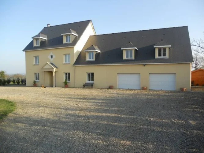 Property set in approx. 3/4 acre of private, fully fenced and easily maintained gardens. Spectacular uninterrupted views of the Normandy countryside and no near neighbours.