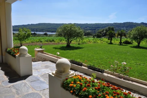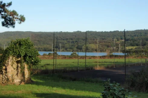 The domain comprises four houses, a large parking area, sheds, tennis court, agricultural lands and woods.