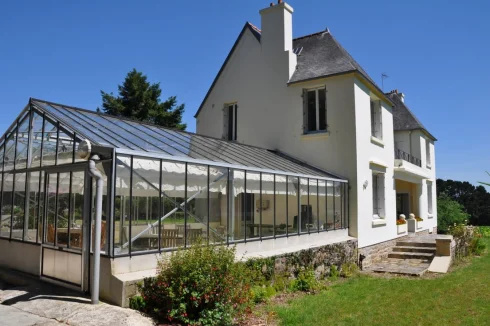 Family estate for sale located 15 kms west of Brest in a peaceful environment, alongside the Elorn River, surrounded by agricultural land and forest.