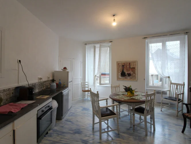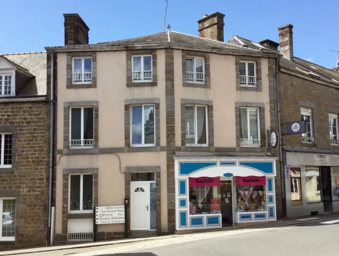 Set on slightly angled corner in the town centre, with a beautiful stone and render facade spanning both the house and shop front, this delightful French property will make an ideal work from home business. Its fantastic quirky French rooms with large windows give great light and character, making this property ideal to enjoy French life in the heart of Gorron, a small town nestled in the department of Mayenne, and close to all amenities and school.