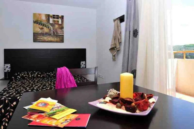 Lovely ground floor corner apartment in secure residence with access to swimming pool, sauna, solarium and parking. The property consists of a kitchen open to the living room with access to balcony, a double bedroom with storage, bathroom, wc and hall.