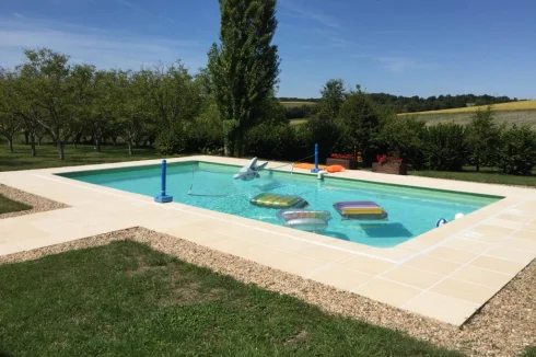 The large private terrace which is great for entertaining, leads down to the 10 x 5 mtr inground swimming pool and overlooks the stunning countryside and sunflower fields.