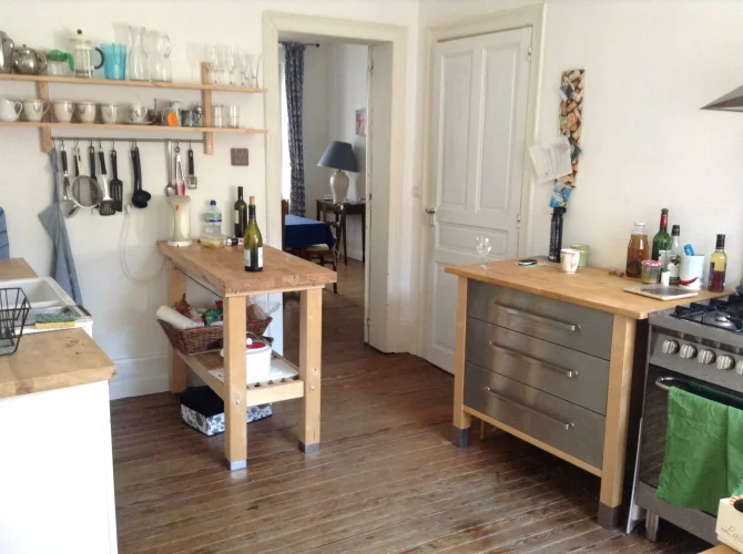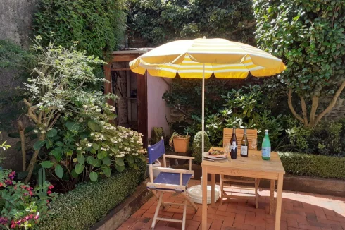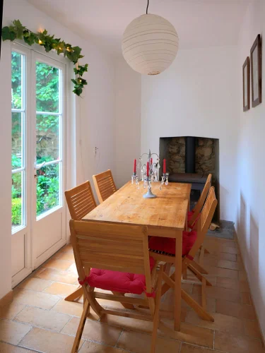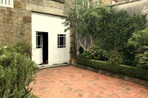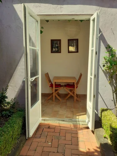 The entrance doorway is inset in a "Grande Porte" which was originally for a Horse and Carriage and can be fully opened to allow a car if necessary tho we use it for bike storage and for Table Tennis. From there you can access into the Courtyard garden which we designed and planted as an outdoor Dining room and private sunbathing area. The house is accessed by an internal doorway within the Garage.