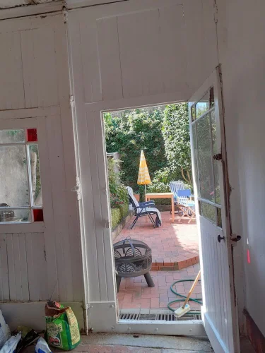 In the garden is a small hut for garden tools which was the original outside toilet, and there are stone steps descending to a large cellar where the Gas Combi boiler is situated and my wine cellar!