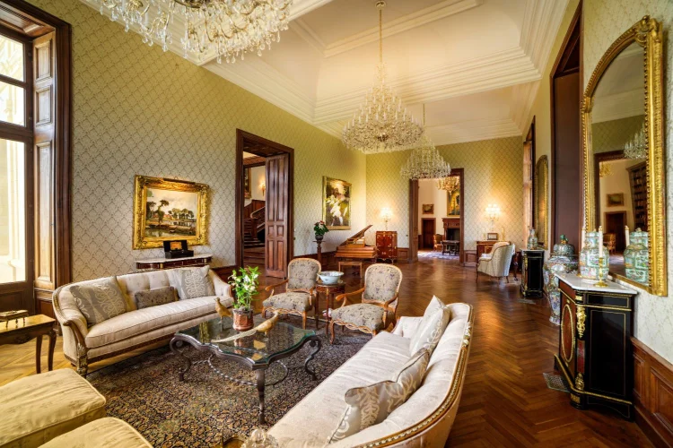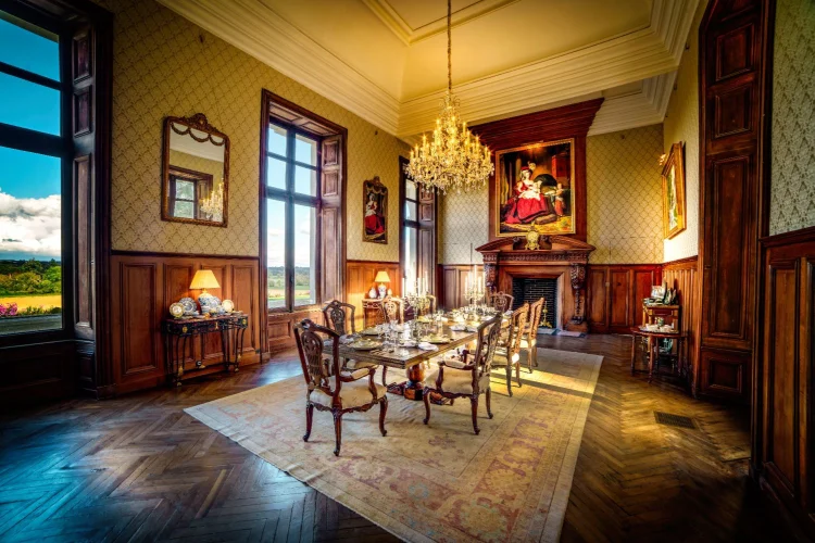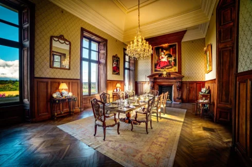 The interior of this very light and airy chateau will dazzle you with the quality of the materials used: custom-made kitchen in Carrara marble, built-in appliances, La Cornue kitchen stove, luxurious bathrooms with heated floors and walk-in showers, oak paneling and bookcases, wide openings with elegant curtains, fireplaces, sumptuous chandeliers, herringbone parquet floors, large staircase, long gallery etc... The property is sold unfurnished. It may be purchased as real estate or as a corporation.