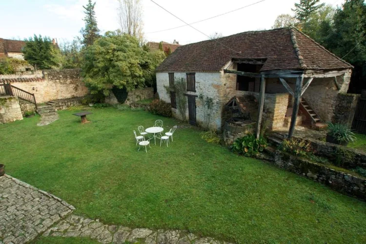 Le jardin arrière clos est clos et mène à une piscine fermée. Il y a aussi une grange vide qui pourrait facilement être convertie en logement supplémentaire si nécessaire. D'un côté de la propriété il y a 2 caves et de l'autre il y a un grand atelier. Il y a un parking couvert et le jardin de devant comprend une terrasse en pierre avec barbecue donnant sur une noyeraie.