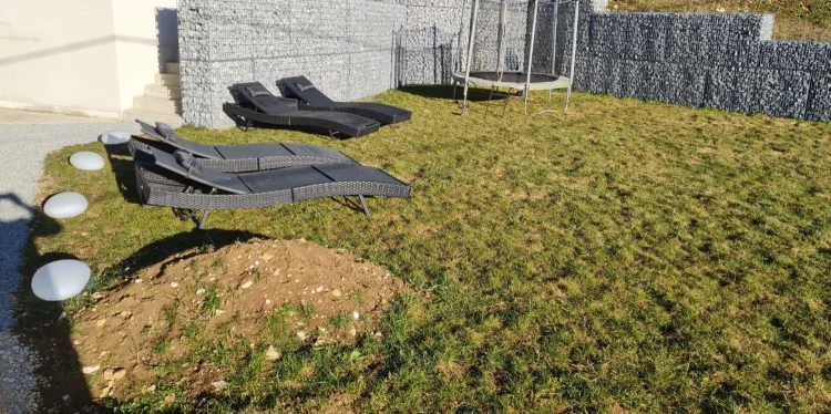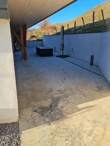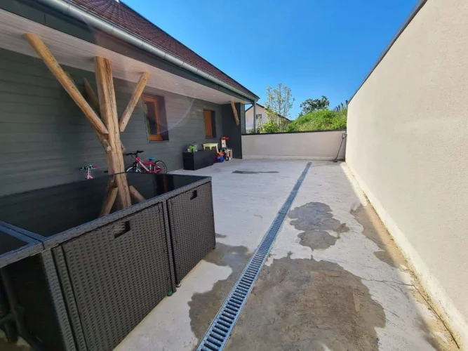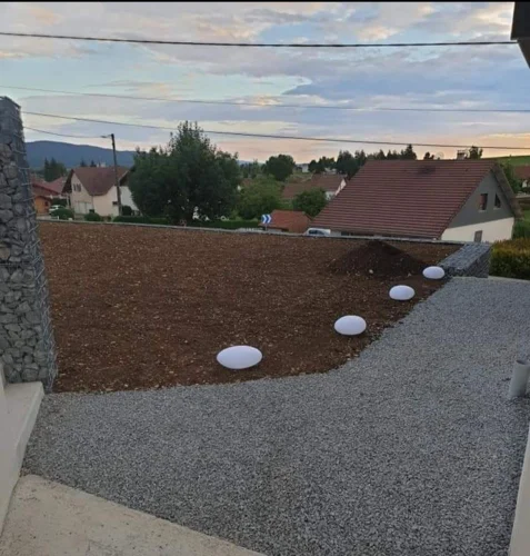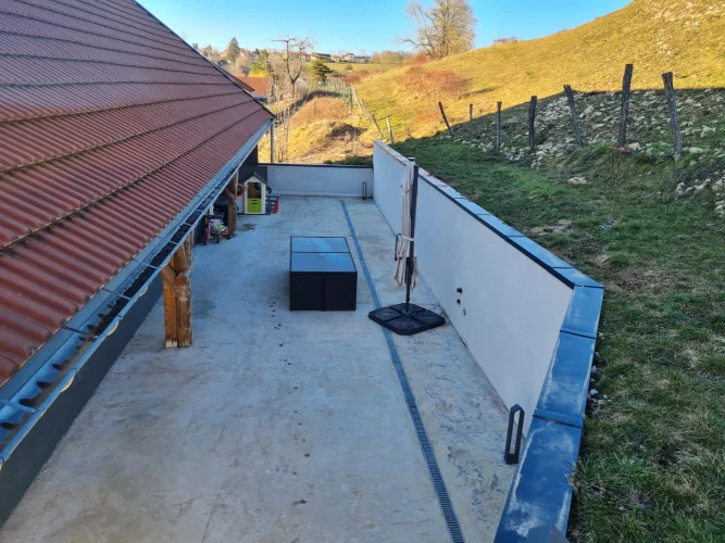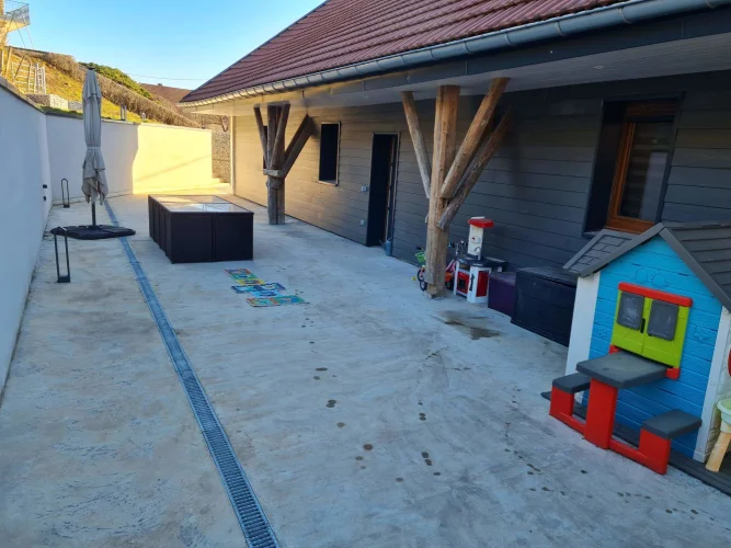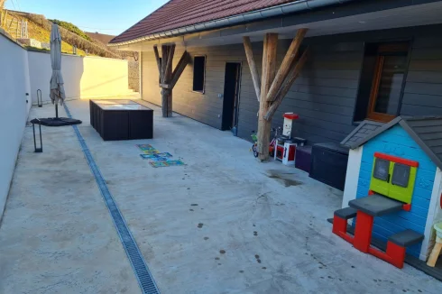 Au même niveau terrasse en béton lisse de 350m² il y a réservation pour jacuzzi et réservation pour une cuisine d été+ terrassement en gazon de 600m² possibilité de placer un piscine