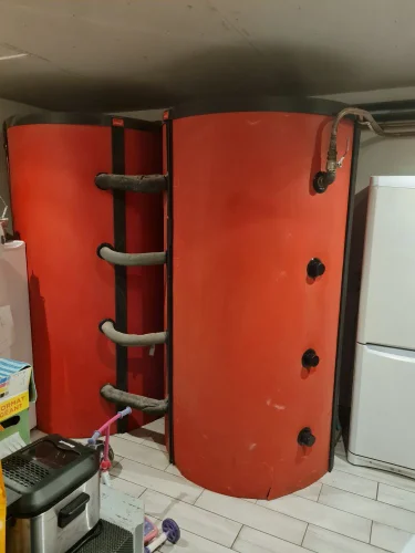 Chaufferie au bois installation windhager comprenant 2 ballons tampons 1500l chacun ,chauffe eau de 300l