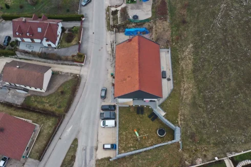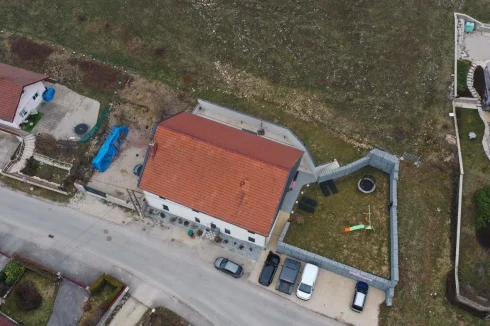 On the same floor there is smooth concrete terrace of 350m². There is designated space for a Jacuzzi, summer kitchen, 600m² of lawn and suitable space for a swimming pool.