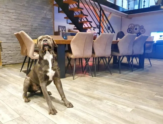Table à mangé en bois sur mesure hêtre 12 places chaises alcantara