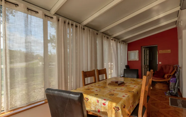 With double windows to the side overlooking the big lake, terrace and BBQ area. This light and spacious room provides a fireplace with wood burning stove, exposed painted timbers and three windows and doors to the conservatory and kitchen. This room also offers a tiled floor, with rugs, three radiators, a modern 50-inch television, and sky box together with a dvd player. The seating is a leather three-piece suite (2 x sofas) together with coffee tables and ceiling fans.